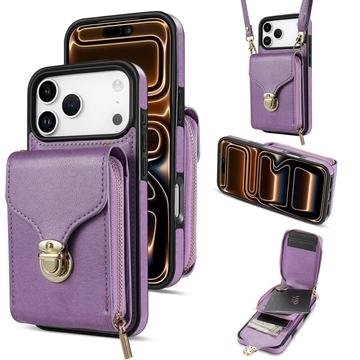 iPhone 17 Pro Max alles-in-één hoesje met portemonnee en riem - paars