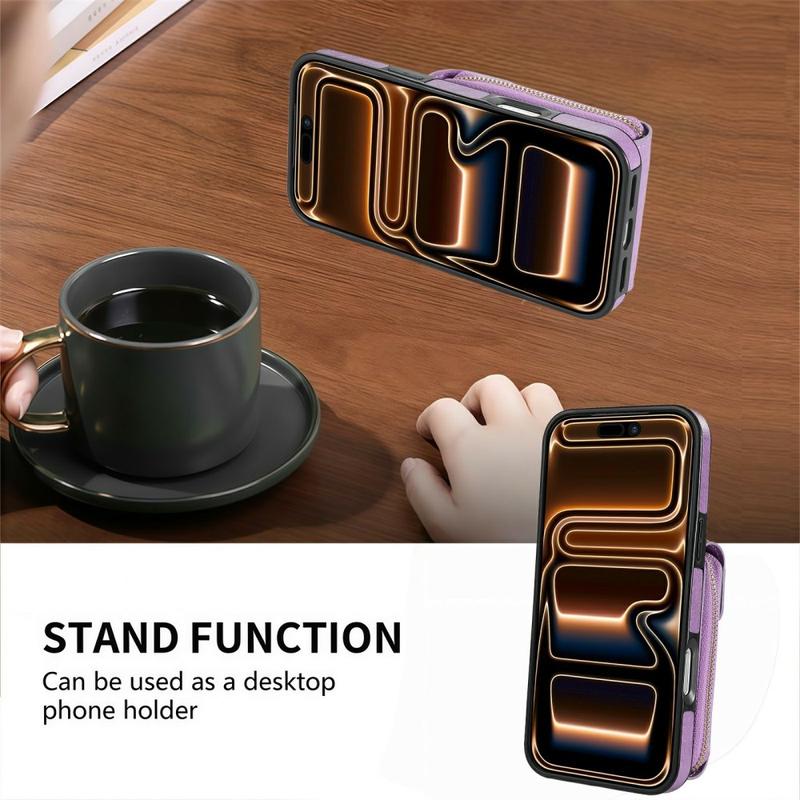 Draag je telefoon, pasjes en geld in één gestroomlijnd accessoire met deze portemonneehoes met rits voor iPhone 17 Pro Max. Gemaakt van duurzaam TPU gecoat in eersteklas polyurethaan leer, biedt hij alledaagse bescherming en vervangt hij de noodzaak van een aparte portemonnee. Perfect voor wie stijl, gemak en veiligheid in één wil.