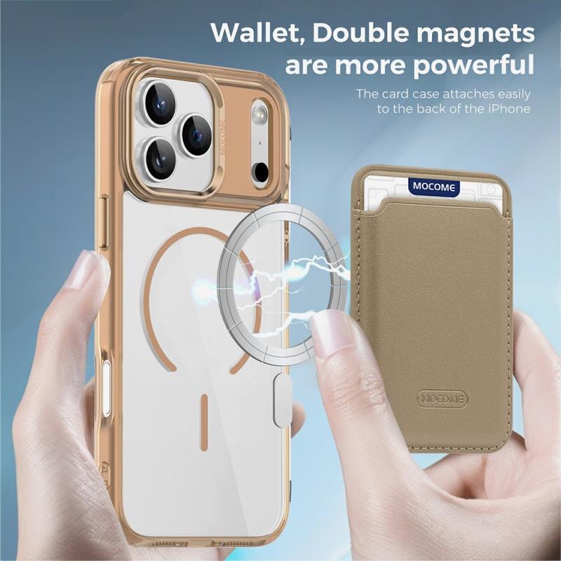 Bescherm je apparaat in stijl met de MagSafe Case voor iPhone 17 Pro Max, ontworpen voor zowel duurzaamheid als gebruiksgemak. Gebouwd met een hybride TPU + PC constructie, combineert deze case flexibiliteit met kracht om je te beschermen tegen vallen, krassen en dagelijks gebruik. De geïntegreerde magnetische ring maakt hem volledig compatibel met MagSafe opladen en magnetische autohouders, terwijl je met de afneembare slanke kaarthoes met dubbele magneet 1-2 kaarten kunt meenemen zonder dat hij extra ruimte inneemt. Een kristalheldere afwerking zorgt ervoor dat je iPhone 17 Pro Max er strak en origineel uitziet, terwijl verstevigde randen en verhoogde randen zorgen voor all-round bescherming voor je scherm en camera.