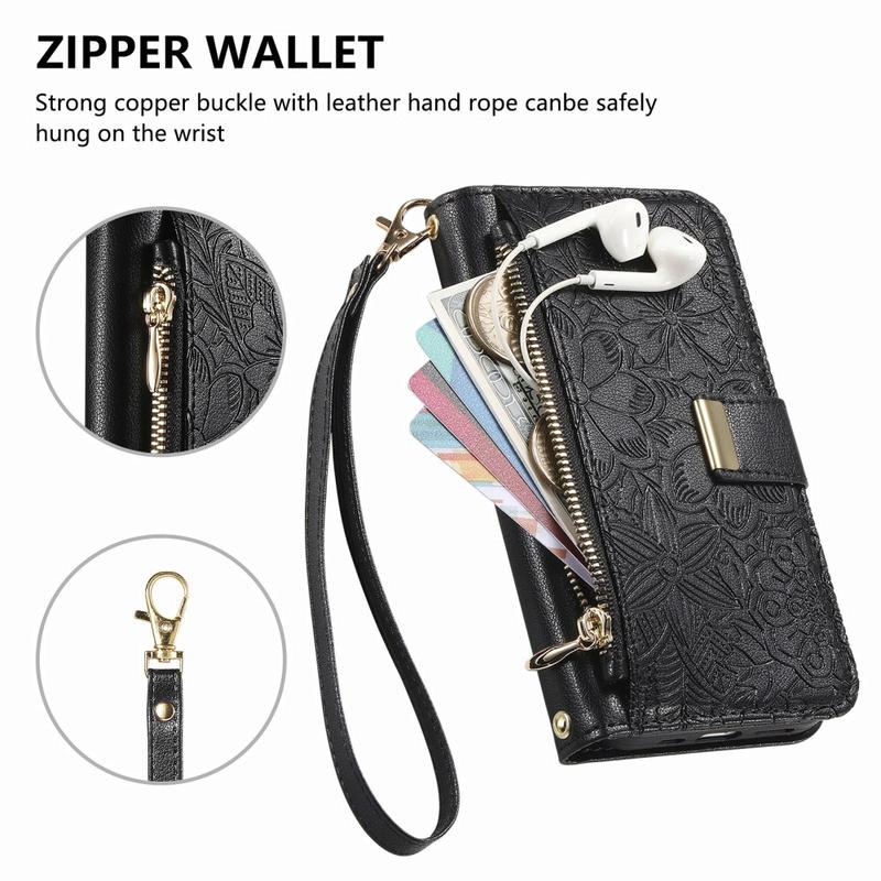 Houd je essentials georganiseerd terwijl je elegantie toevoegt aan je iPhone 17 Pro Max met deze portemonneehoes met bloemenbladmotief. Ontworpen met meerdere kaartsleuven, een veilig ritsvak en een afneembare polsband, is het de perfecte mix van functionaliteit en stijl. Hij is gemaakt van duurzaam TPU en polyurethaan, biedt betrouwbare bescherming en is tegelijkertijd een modieuze alles-in-één portemonnee.