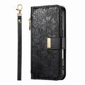 Portemonnee Hoesje met bloemen en bladmotief met Ritszakje & Polsbandje voor iPhone 17 Pro Max