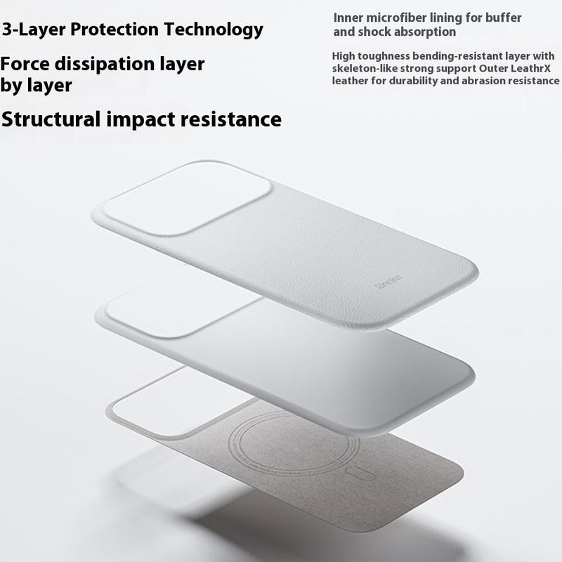 Bescherm je telefoon in eersteklas stijl met de BENKS Q2 MagSafe case voor iPhone 17 Pro. Hij is vakkundig gemaakt van een buitenkant van microvezelleder, een stijf pc-frame en een zachte siliconen binnenkant, waardoor hij luxueus aanvoelt en bescherming biedt voor het hele lichaam. De innovatieve N52 zeldzame aardmagnetische matrix verbetert de MagSafe-compatibiliteit en zorgt voor een sterke, betrouwbare verbinding voor opladers en accessoires. Deze hoes is ontworpen om vingerafdrukken en zweet te weerstaan en blijft schoon en elegant bij dagelijks gebruik. Met zijn slanke profiel, precieze pasvorm en verbeterde griptextuur is de BENKS Q2 de perfecte balans tussen verfijning, comfort en duurzaamheid.