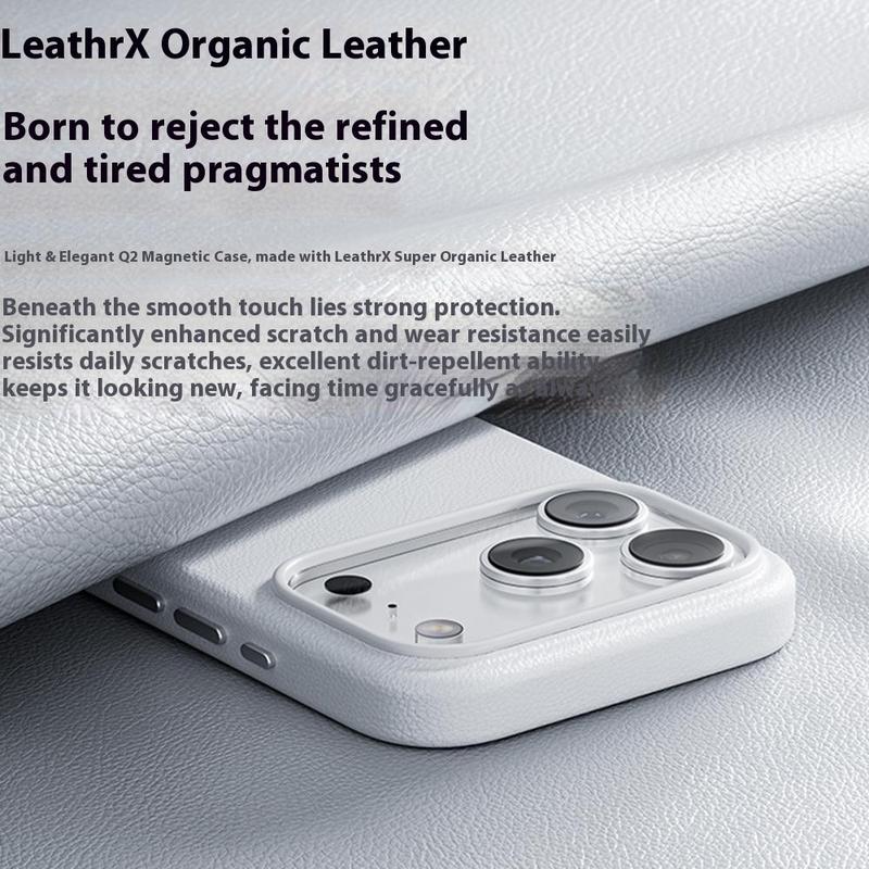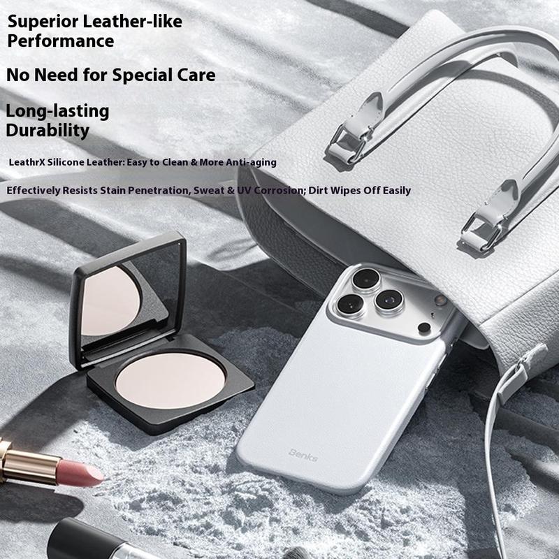 Bescherm je telefoon in eersteklas stijl met de BENKS Q2 MagSafe case voor iPhone 17 Pro Max. Hij is vakkundig gemaakt van een buitenkant van microvezelleder, een stijf pc-frame en een zachte siliconen binnenkant, waardoor hij luxueus aanvoelt en bescherming biedt voor het hele lichaam. De innovatieve N52 zeldzame aardmagnetische matrix verbetert de MagSafe-compatibiliteit en zorgt voor een sterke, betrouwbare verbinding voor opladers en accessoires. Deze hoes is ontworpen om vingerafdrukken en zweet te weerstaan en blijft schoon en elegant bij dagelijks gebruik. Met zijn slanke profiel, precieze pasvorm en verbeterde griptextuur is de BENKS Q2 de perfecte balans tussen verfijning, comfort en duurzaamheid.
