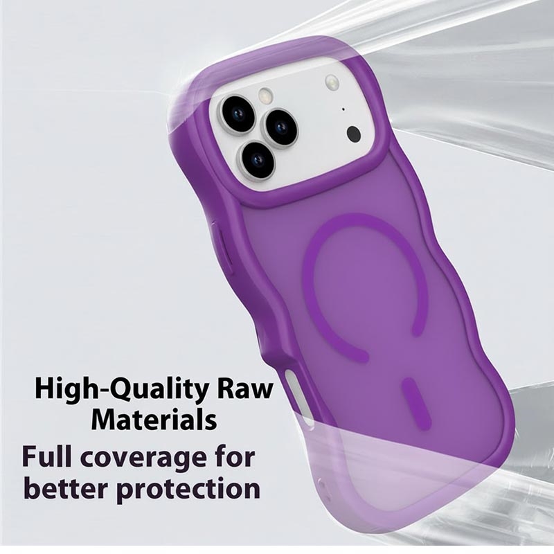 Bescherm je iPhone 17 Pro Max in stijl met de MagSafe-compatibele Wave Edge Case, een perfecte balans tussen elegantie en functionaliteit. Deze hoes is gemaakt van een combinatie van zacht TPU en duurzaam PC-materiaal en biedt betrouwbare bescherming tegen vallen, stoten en krassen, terwijl het slanke en lichte profiel behouden blijft. Het moderne golf-textuur ontwerp verbetert de grip en geeft je telefoon een unieke esthetiek, terwijl de gladde skin-touch afwerking zorgt voor een luxe gevoel in de hand.