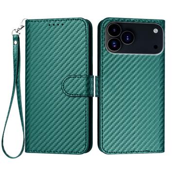 iPhone 17 Pro Premium Portemonnee Hoesje met Riem - Koolstofvezel Textuur - Koolstofgroen