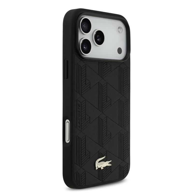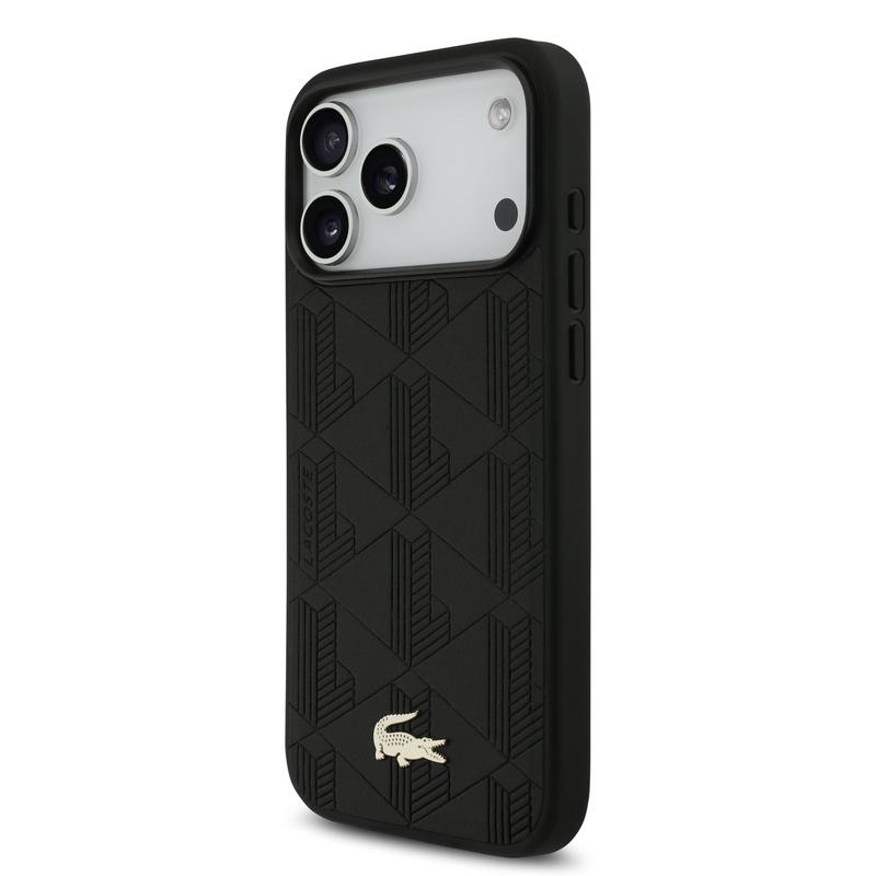 iPhone 17 Pro Max Lacoste Monogramme Gold Logo-hoesje - compatibel met MagSafe - zwart