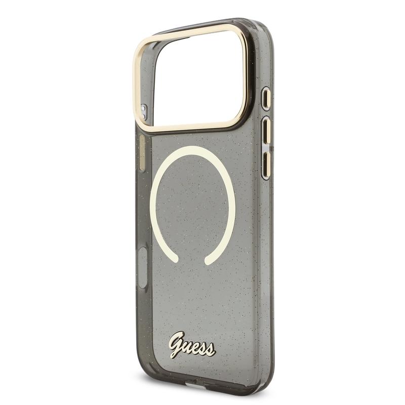 Guess IML Glitter Script Riem MagSafe-hoesje voor iPhone 17 Pro Max - Glitter achterkant met polsbandje, PC+TPU-bescherming, compatibel met MagSafe