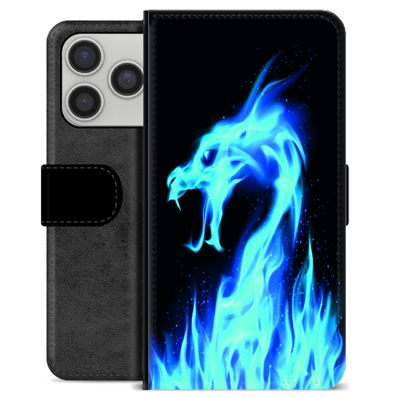 iPhone 17 Pro Premium Portemonnee Hoesje - Blauwe Vuurdraak