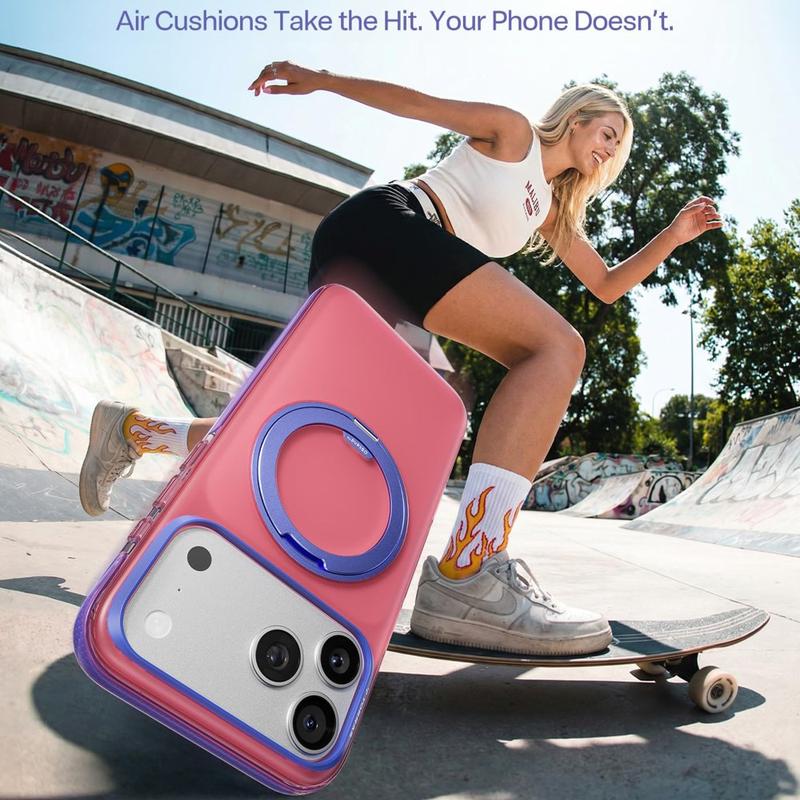 Deze hoes is een uitstekende keuze voor gebruikers die meer willen dan alleen een standaard beschermhoes. Het combineert sterke magnetische compatibiliteit, een ingebouwde verstelbare standaard en versterkte bescherming van meerdere materialen in één ontwerp. De opstaande randen en de dubbellaagse constructie zorgen voor dagelijkse bescherming, terwijl de kleurblokafwerking de iPhone 17 Pro een opvallendere en modernere uitstraling geeft. Het is bijzonder geschikt voor gebruikers die regelmatig magnetische accessoires gebruiken en ook een handige standaard willen voor dagelijks gebruik.