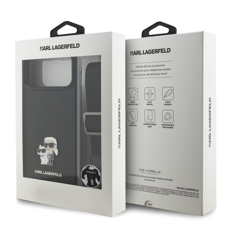- Karl Lagerfeld Saffiano Crossbody Metal Karl & Choupette hoesje voor de iPhone 17 Pro