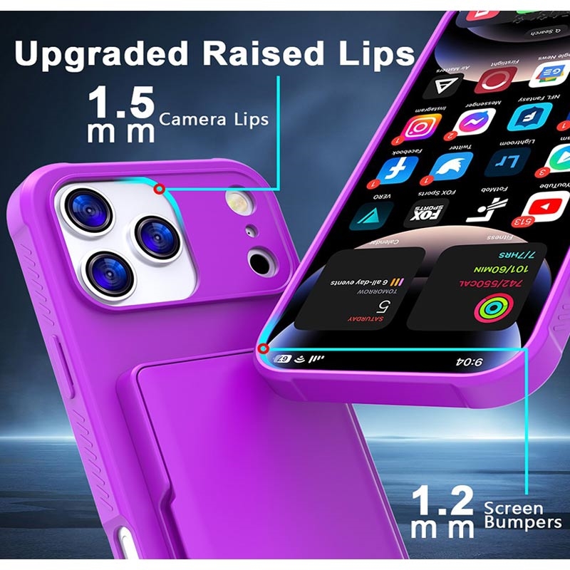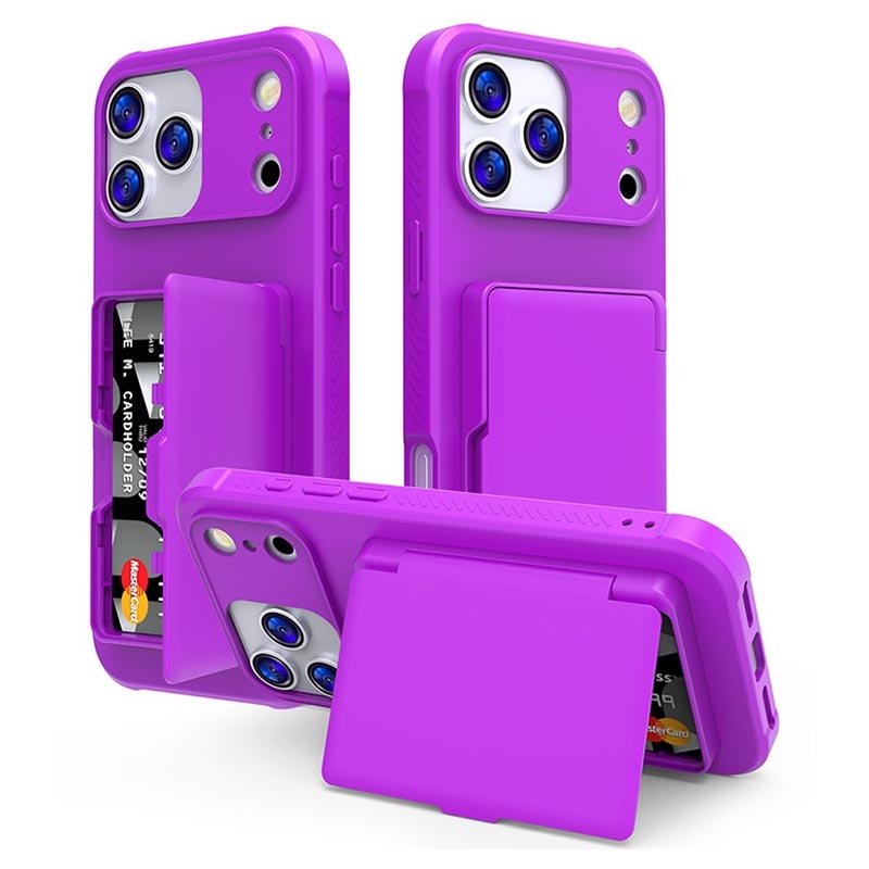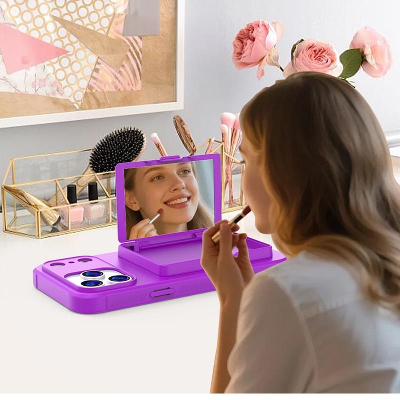 iPhone 17 Pro Max Hybride Hoesje met Verborgen Spiegel & Kaartsleuf - Paars