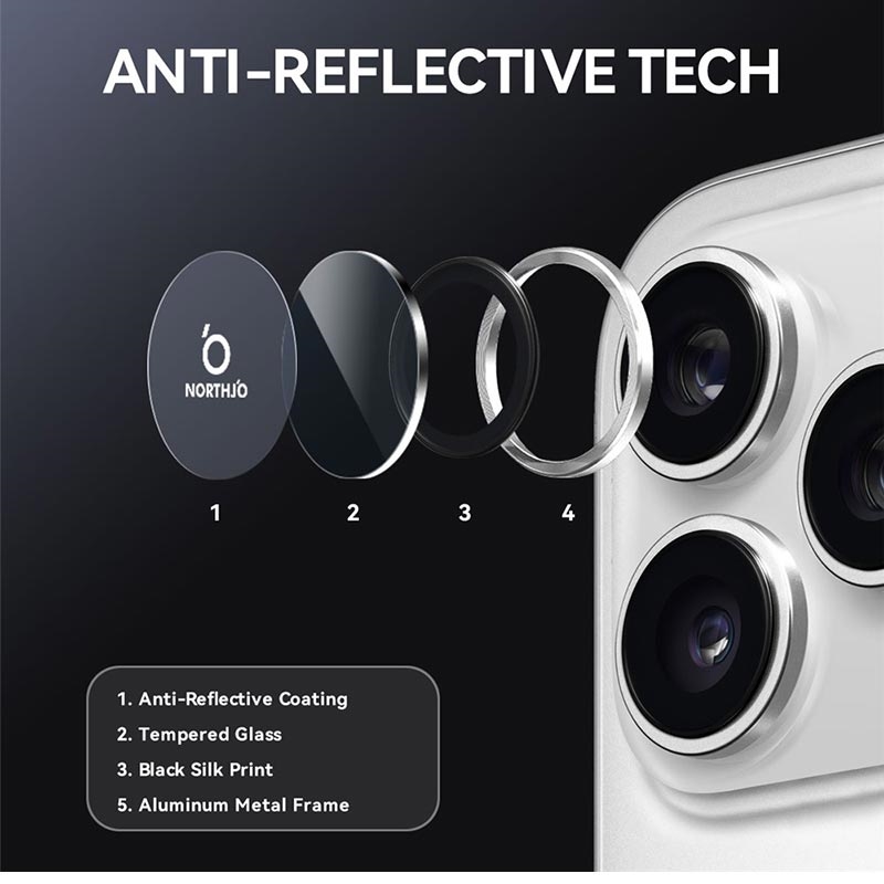 Upgrade je iPhone 17 Pro, iPhone 17 Pro Max met de Northjo cameralensbeschermer. Voorzien van een CD-ader aluminium ring, voegt het een slanke, moderne touch toe aan je iPhone 17 Pro, iPhone 17 Pro Max terwijl het robuuste bescherming biedt. Het 9H geharde glas beschermt tegen krassen, stoten en stof, zodat je cameralens kristalhelder blijft. Dankzij de eenvoudige installatie zonder gereedschap kun je de duurzaamheid en esthetiek van je iPhone 17 Pro, iPhone 17 Pro Max in een paar seconden verbeteren.