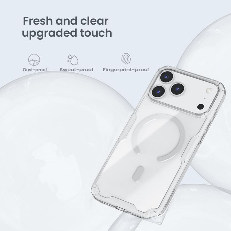 Nillkin Nature Pro Hybride Hoesje voor iPhone 17 Pro - MagSafe compatibel, ultrahelder TPU + PC met verhoogde randbescherming voor camera en scherm