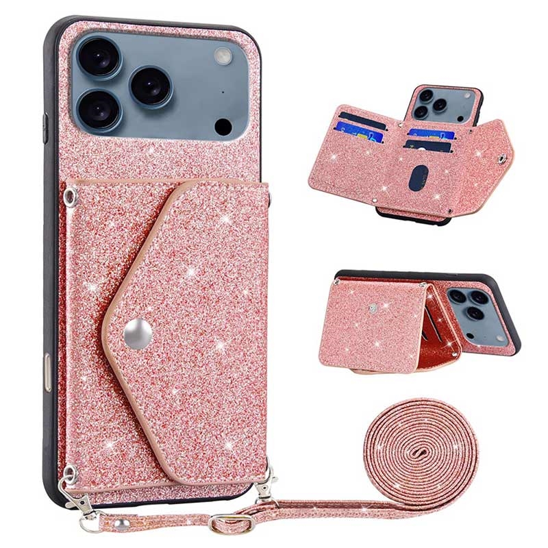 De hoogwaardige hoes uit de Stardust-serie is de juiste keuze om je iPhone 17 Pro te beschermen tegen mogelijke schade. Het heeft een kaarthouder aan de achterkant met een drukknoop die geweldig is om je essentiële kaarten op te bergen en ze veilig te houden. Een glanzend glitteroppervlak voegt een vleugje glamour toe aan je telefoon. Daarnaast wordt de hoes geleverd met een schouderriem van 150 cm, zodat je je iPhone 17 Pro overal mee naartoe kunt nemen.