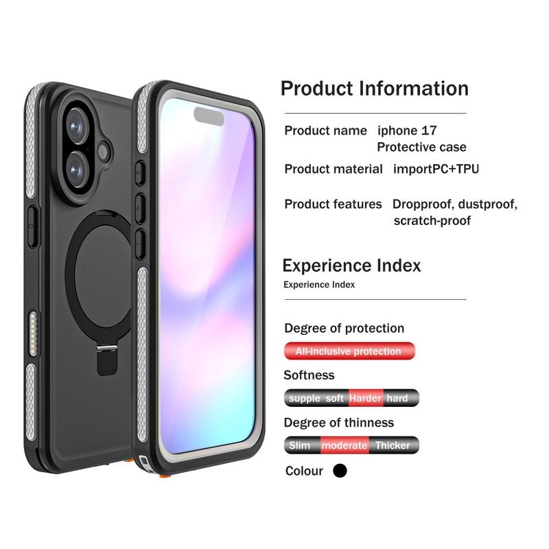 Blijf beschermd in elke omgeving met de Redpepper IP68 MagSafe waterdichte hoes voor iPhone 17. Deze case is ontworpen met het oog op duurzaamheid en functionaliteit en biedt volledige 360° bescherming tegen water, stof, vallen en schokken, terwijl hij MagSafe-accessoires ondersteunt en een handige ingebouwde kickstand heeft voor handsfree kijken.