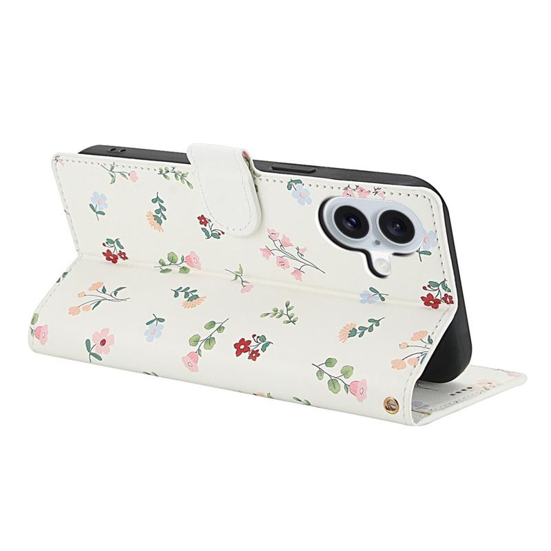Ruitvormige Bloemen Portemonnee Hoesje voor iPhone 17 - met riem en kaartsleuven