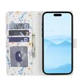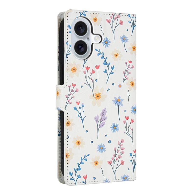 Ruitvormige Bloemen Portemonnee Hoesje voor iPhone 17 - met riem en kaartsleuven