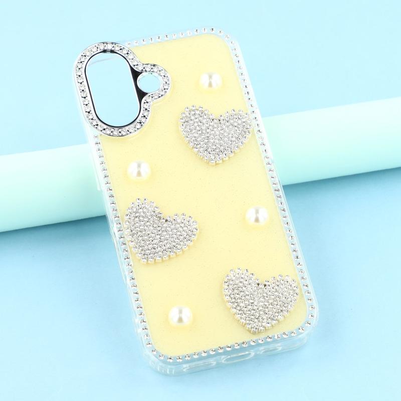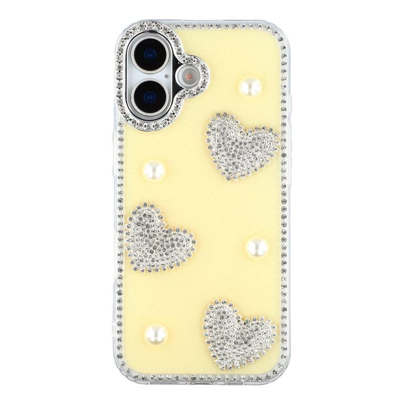 Deze iPhone 17 hoes combineert betrouwbare dagelijkse bescherming met glamoureuze stijl. Met glinsterende strass-steentjes rond de randen en fonkelende parelmoeren hartversieringen op de achterkant, verandert het je iPhone 17 in een modieus accessoire terwijl het veilig blijft tegen krassen en stoten.