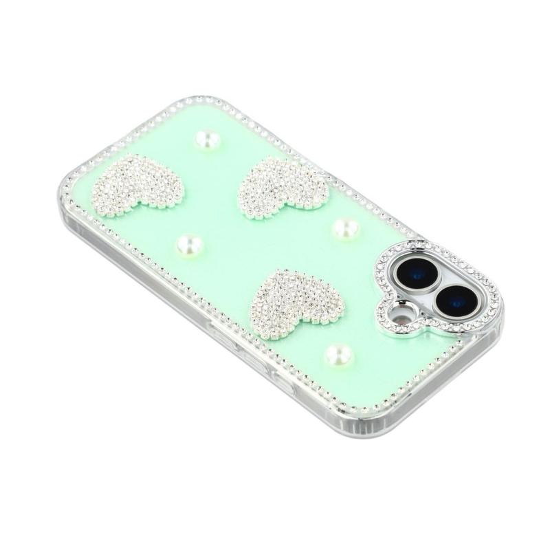 Deze iPhone 17 hoes combineert betrouwbare dagelijkse bescherming met glamoureuze stijl. Met glinsterende strass-steentjes rond de randen en fonkelende parelmoeren hartversieringen op de achterkant, verandert het je iPhone 17 in een modieus accessoire terwijl het veilig blijft tegen krassen en stoten.