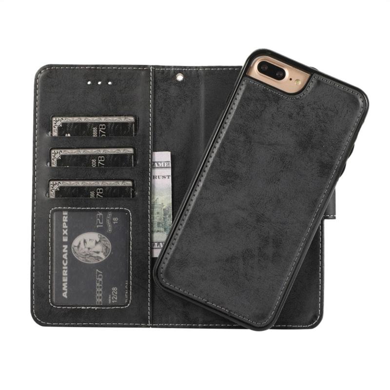 iPhone 7 Plus/8 Plus Vintage 2-in-1 portemonneehoesje met afneembare omslag - Zwart