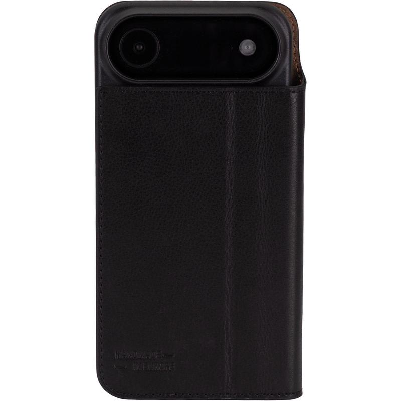Twee kaartsleuven aan de binnenkant geven je snel en gemakkelijk toegang tot je benodigdheden, terwijl het hoogwaardige lederen materiaal elke keer dat je je iPhone Air vasthoudt een premium gevoel geeft. De voorflap kan worden opgevouwen tot een standaard en is voorzien van een magnetisch vergrendelingsmechanisme dat je iPhone Air veilig houdt.