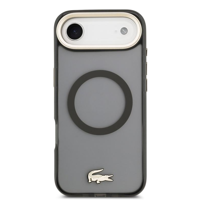 Lacoste Frosted Finish Gold Logo Hybride Hoesje voor iPhone Air - MagSafe-compatibel, goudkleurig logo en premium achterkant met cameraframe