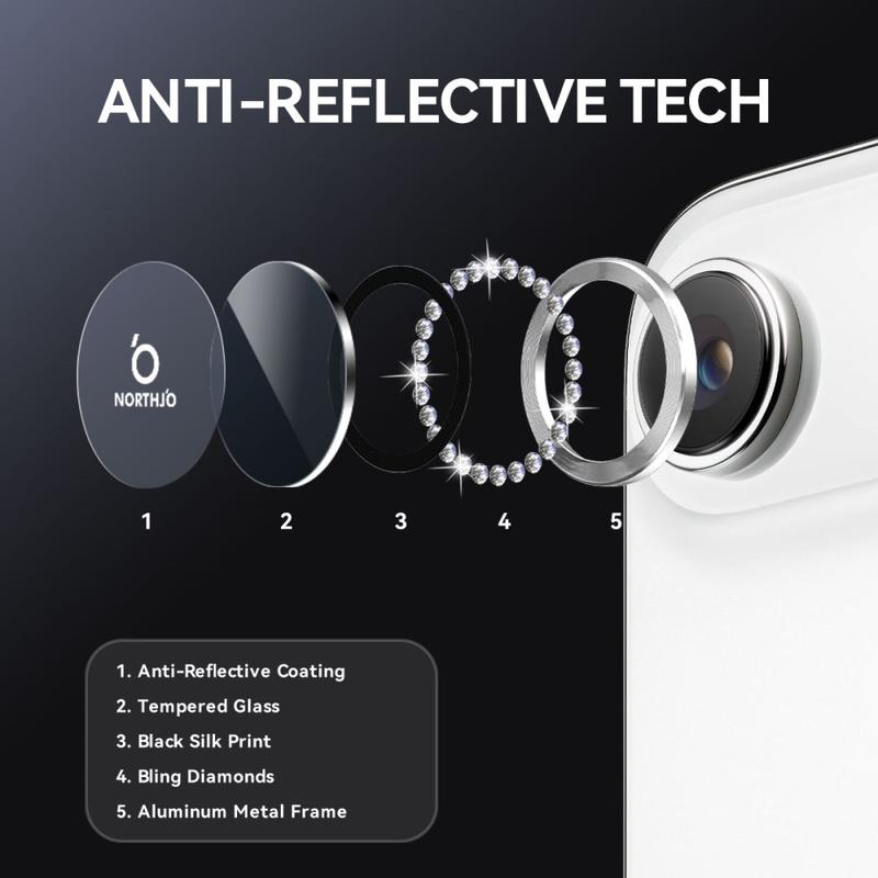 Voeg glans en bescherming toe aan je iPhone Air met de NORTHJO Camera Lens Protector. Ontworpen met glinsterende steentjes en precisiegeslepen gehard glas, houdt het je cameralens veilig tegen krassen, stof en stoten terwijl het een vleugje elegantie en luxe toevoegt.