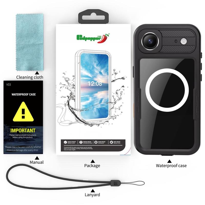 Klik de REDPEPPER Waterproof Magnetic Case aan en geef je iPhone Air compromisloze bescherming, van woon-werkverkeer in de stad tot avonturen aan zee.