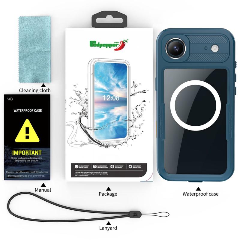 Klik de REDPEPPER Waterproof Magnetic Case aan en geef je iPhone Air compromisloze bescherming, van woon-werkverkeer in de stad tot avonturen aan zee.