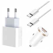 Tech-Protect C35W USB-C-wandoplader met dubbele poort en USB-C-kabel - Wit