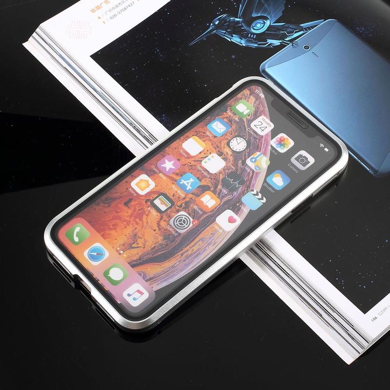 - iPhone XS, iPhone X case with a metal frame and tempered glass for back and front
