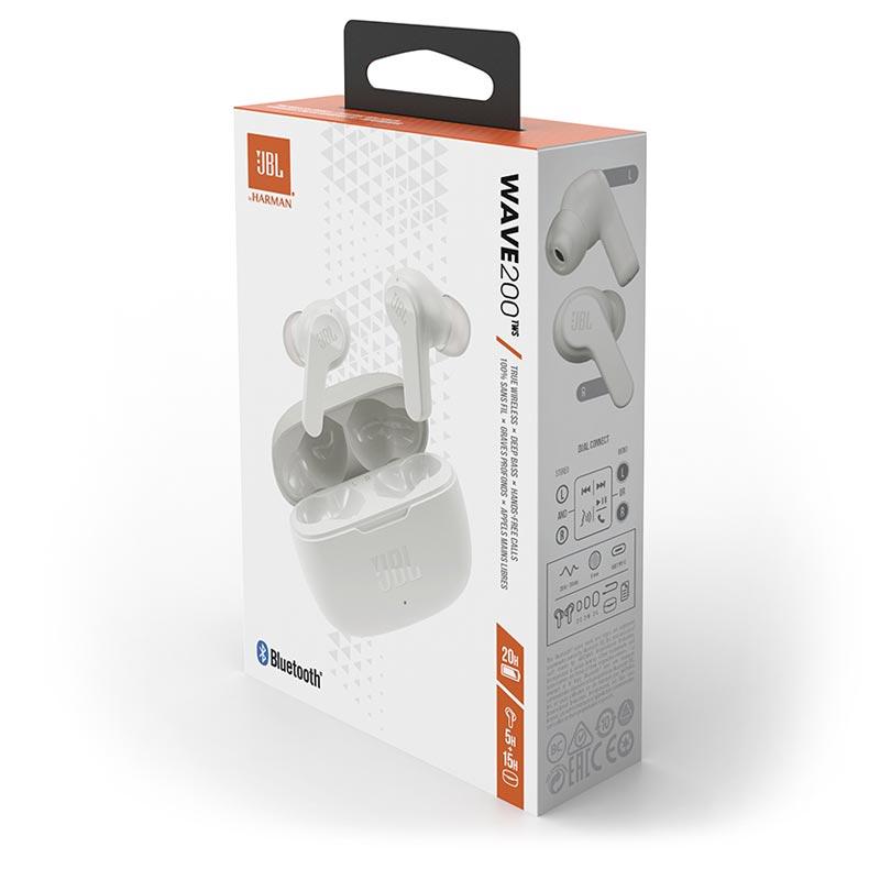 Laat je dag beter klinken met de JBL Wave 200TWS draadloze oortjes.