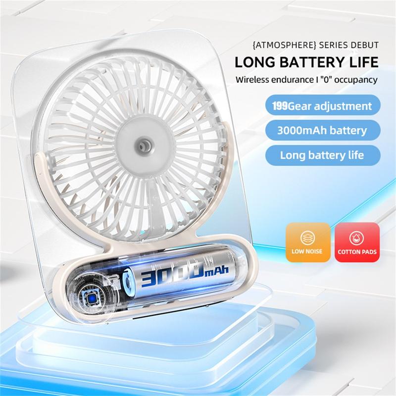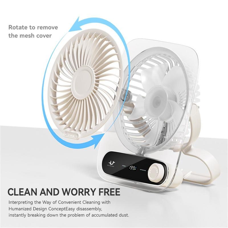 JF136 Brede Hoek Draagbare Bureau & Hangende Ventilator / 199-Snelheid 3000mAh USB-C Oplaadbare Koeler