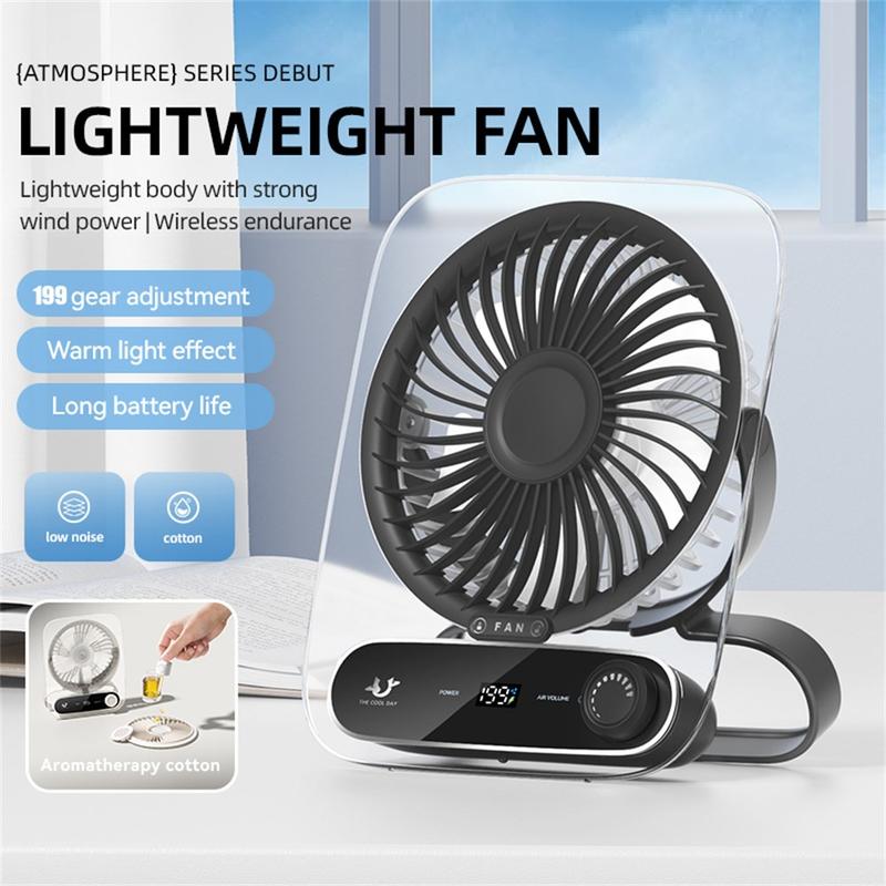 Overal de hitte overwinnen met de ultra-veelzijdige JF136. De rotor met vijf bladen duwt een krachtige, gelijkmatige luchtstroom over een volledige boog van 180°, terwijl een slank frame in semi-transparant PC eruitziet als een gebeeldhouwd blok ijs op elk bureau of elke plank. Hang hem op aan een stapelbed, klem hem aan een keukenrek of zet hem rechtop-3000 mAh batterijvermogen en fluisterstille efficiëntie houden je tot 10 uur koel op de laagste stand. Een afneembaar rooster maakt stofvrij onderhoud snel, en USB-C snel opladen betekent dat je altijd klaar bent voor de volgende hittegolf.