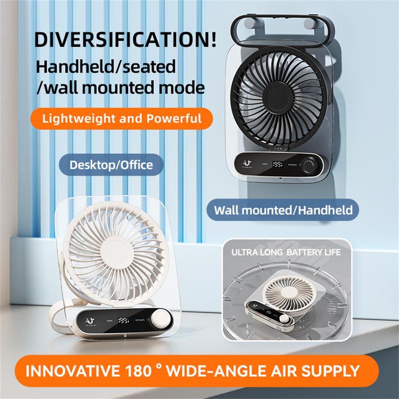 JF136 Brede Hoek Draagbare Bureau & Hangende Ventilator / 199-Snelheid 3000mAh USB-C Oplaadbare Koeler