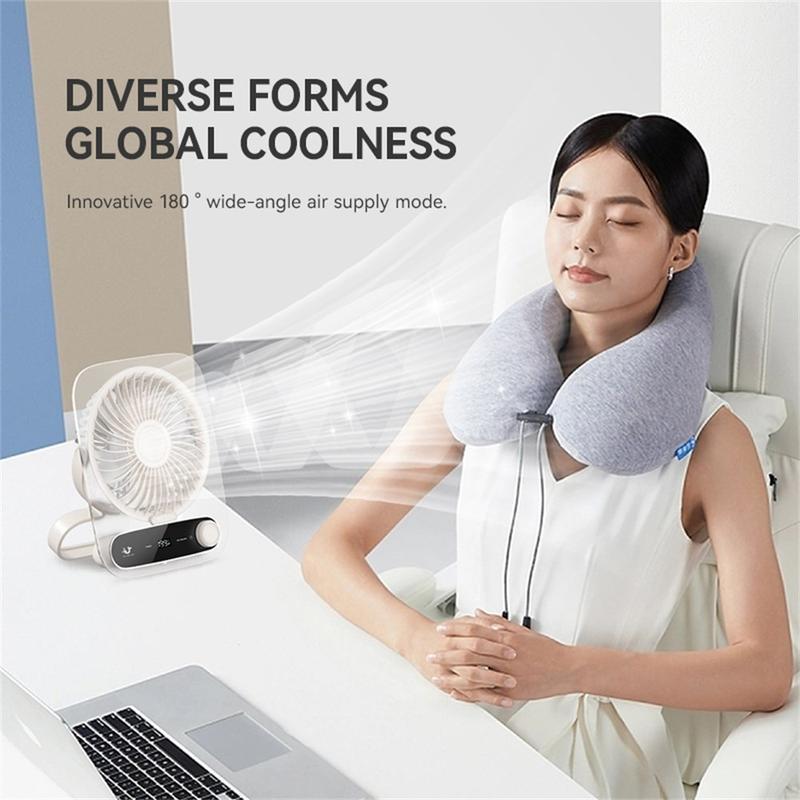 Overal de hitte overwinnen met de ultra-veelzijdige JF136. De rotor met vijf bladen duwt een krachtige, gelijkmatige luchtstroom over een volledige boog van 180°, terwijl een slank frame in semi-transparant PC eruitziet als een gebeeldhouwd blok ijs op elk bureau of elke plank. Hang hem op aan een stapelbed, klem hem aan een keukenrek of zet hem rechtop-3000 mAh batterijvermogen en fluisterstille efficiëntie houden je tot 10 uur koel op de laagste stand. Een afneembaar rooster maakt stofvrij onderhoud snel, en USB-C snel opladen betekent dat je altijd klaar bent voor de volgende hittegolf.