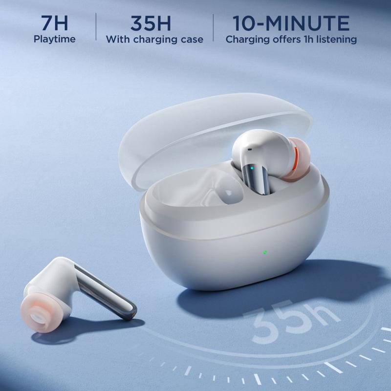 35 uur lang gezelschap, onmiddellijke flitsoplading: 7H afspeeltijd, met 35H oplaaddoos, opladen 10min/muziek 1H
