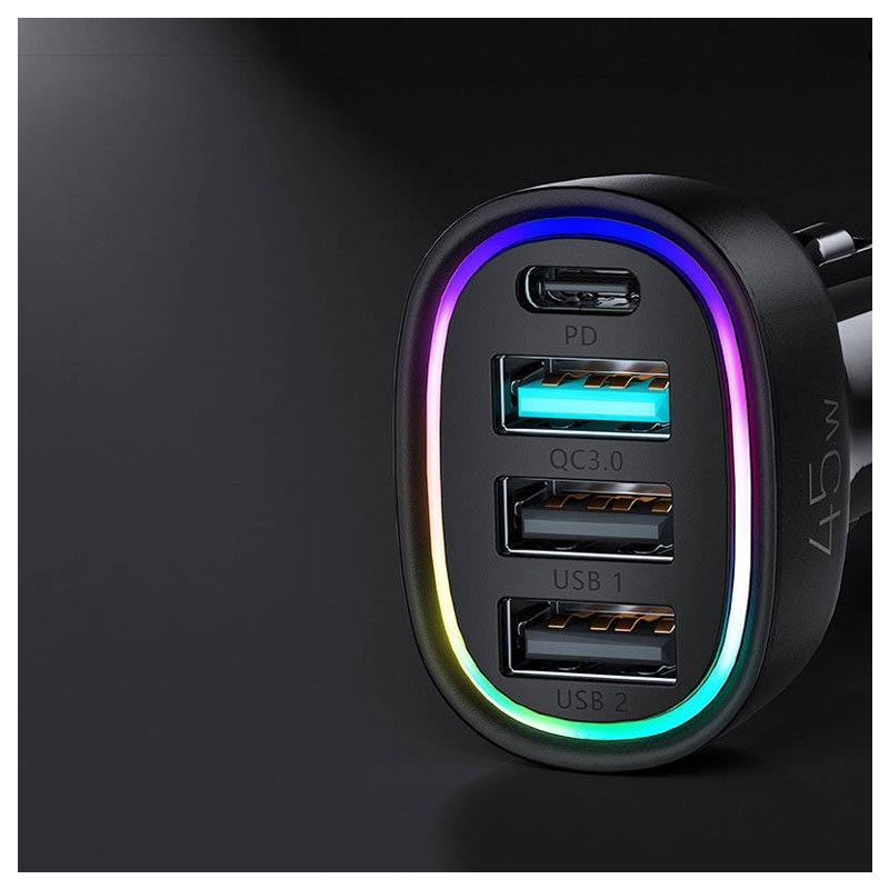 Joyroom JR-CL09 Multi-Port Autolader 45W - 1x USB-C PD, 1x QC3.0 USB, 2x USB, LED