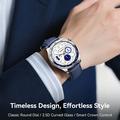 - 2,5 D rond glas en intelligente kroon - klassieke look, voelbaar scrollen door menu's en directe snelkoppelingen.