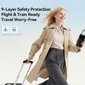 Powerbanks worden beoordeeld op een interne accuspanning (hier 3,7 V), terwijl de "nominale capaciteit" bij 5 V lager is door spanningsomzetting en efficiëntieverliezen. Een 74 Wh powerbank is een populair reisvriendelijk formaat omdat het een grote capaciteit biedt terwijl het binnen de gebruikelijke limieten van luchtvaartmaatschappijen voor handbagage batterijen blijft (controleer altijd de regels van je luchtvaartmaatschappij).