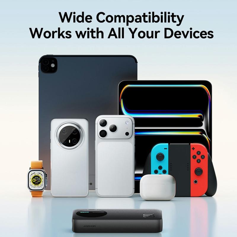 De JOYROOM JR-PBF14 Pro powerbank is gemaakt voor drukke dagen, reizen en het opladen van meerdere apparaten. Met een hoge capaciteit van 20000mAh geeft hij je een betrouwbare back-up stroomvoorziening voor smartphones, tablets, oordopjes en meer. Snel opladen tot 22.5W verkort de wachttijd, terwijl je met drie outputpoorten tot drie apparaten tegelijk kunt opladen. Een duidelijke 4-LED indicator geeft in één oogopslag het resterende vermogen aan, zodat je altijd weet wanneer het tijd is om op te laden.