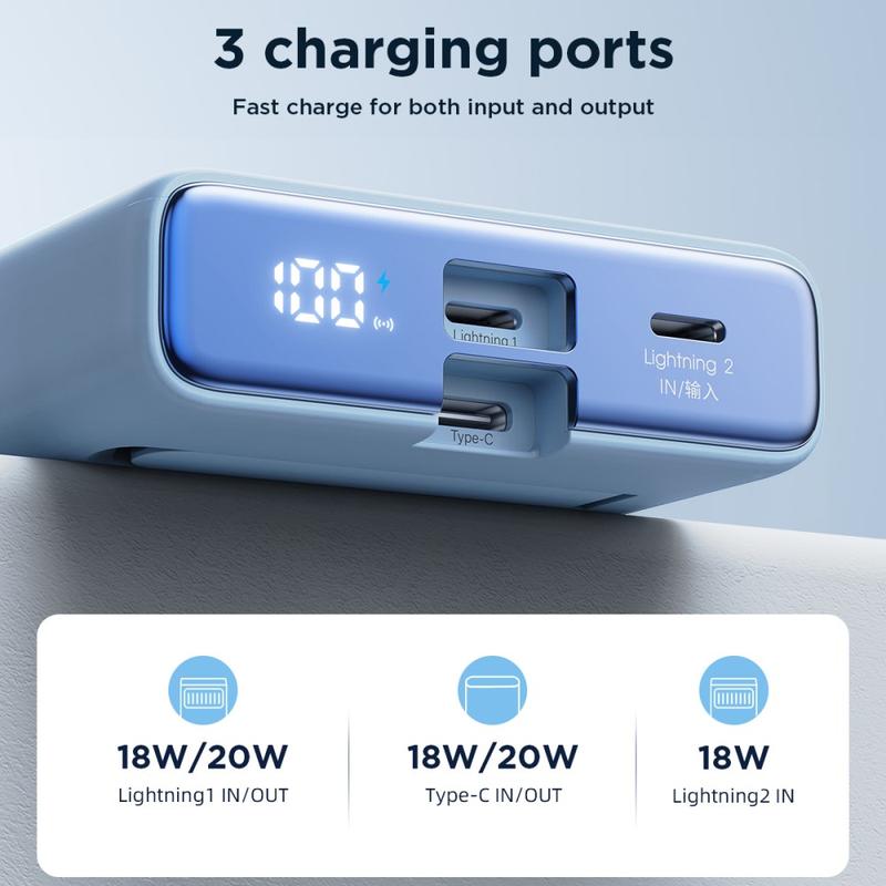 JOYROOM JR-PBM01 PD 20W 10000mAh Telefoon Power Bank Magnetische Draadloze Oplader met Ingebouwde Kabel / Kickstand - Zwart