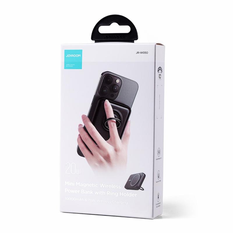 JOYROOM JR-W050 20W PD3.0 Snel Opladen Power Bank 10000mAh Magnetische Draadloze Oplader Externe Batterij Pack met Ring Houder Kickstand - Zwart