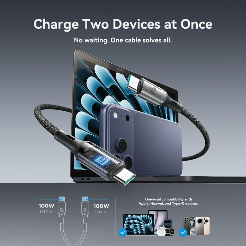 Als je meerdere USB-C apparaten gebruikt, zorgt deze kabel voor minder rommel en wordt opladen eenvoudiger. Je krijgt 100W ondersteuning met een hoog vermogen, slim energiebeheer en een stevige gevlochten constructie die is ontworpen voor dagelijks gebruik, plus de handige organiser voor eenvoudig opbergen.