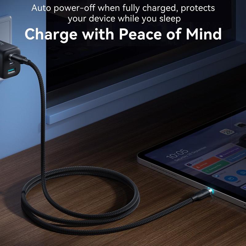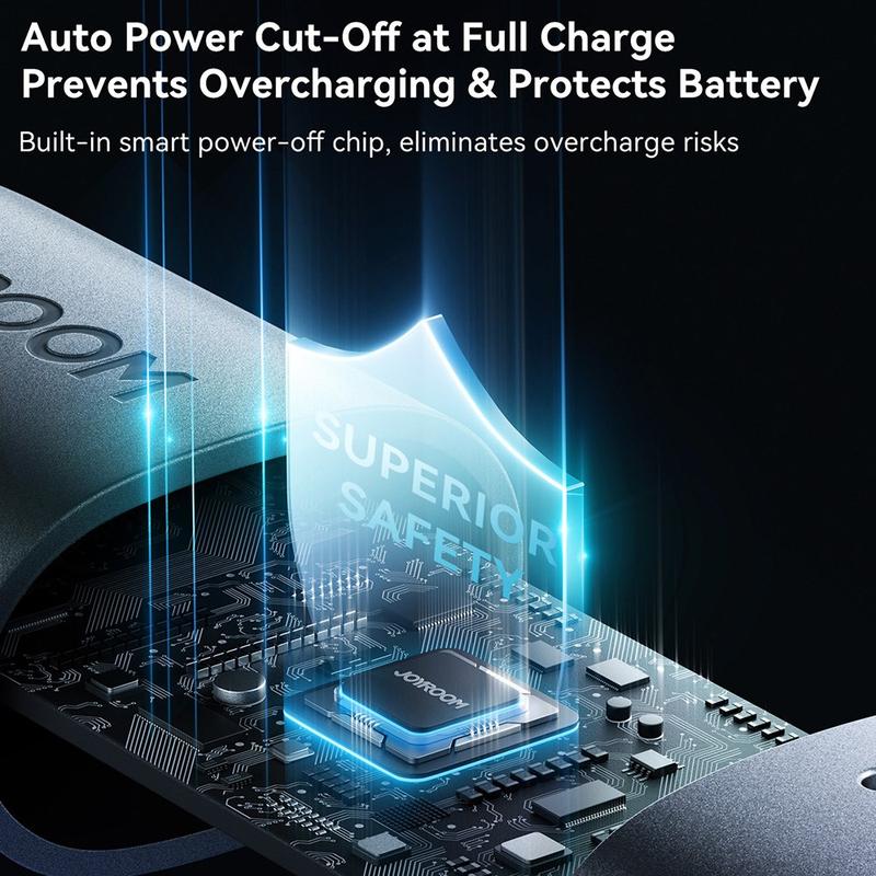 De ingebouwde intelligente chip helpt bij het regelen van de spanning en stroom voor stabieler opladen, terwijl de slimme automatische uitschakelfunctie de stroom uitschakelt zodra het apparaat volledig is opgeladen. Dit draagt bij aan het behoud van de batterij en maakt 's nachts opladen veiliger. Dankzij de tweekleurige LED-indicator kunt u de oplaadstatus ook gemakkelijker in één oogopslag zien.