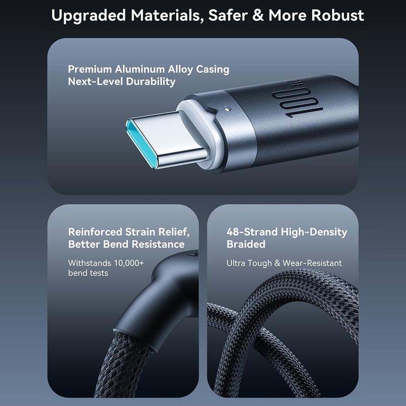 100W USB-C-kabels zijn bijzonder populair omdat ze niet alleen telefoons en tablets kunnen opladen, maar ook veel moderne laptops en grotere apparaten. Gevlochten kabels hebben vaak de voorkeur voor dagelijks gebruik omdat ze beter bestand zijn tegen slijtage dan standaard kabels met een plastic omhulsel, vooral wanneer ze in tassen worden meegenomen of vaak worden gebruikt.