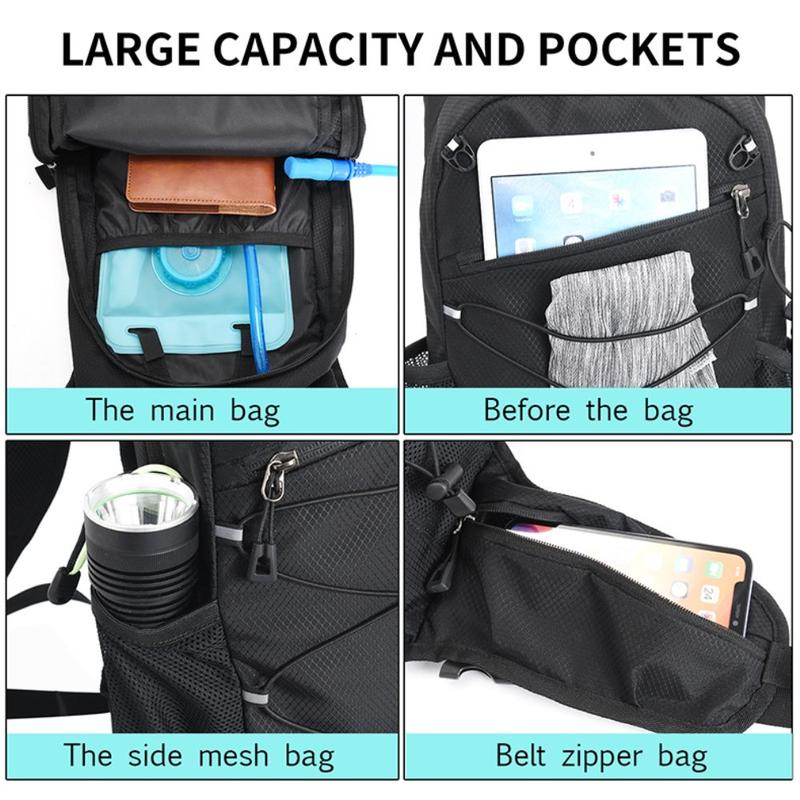 De rugzak is ontworpen met meerdere vakken voor je telefoon, waterfles en andere benodigdheden