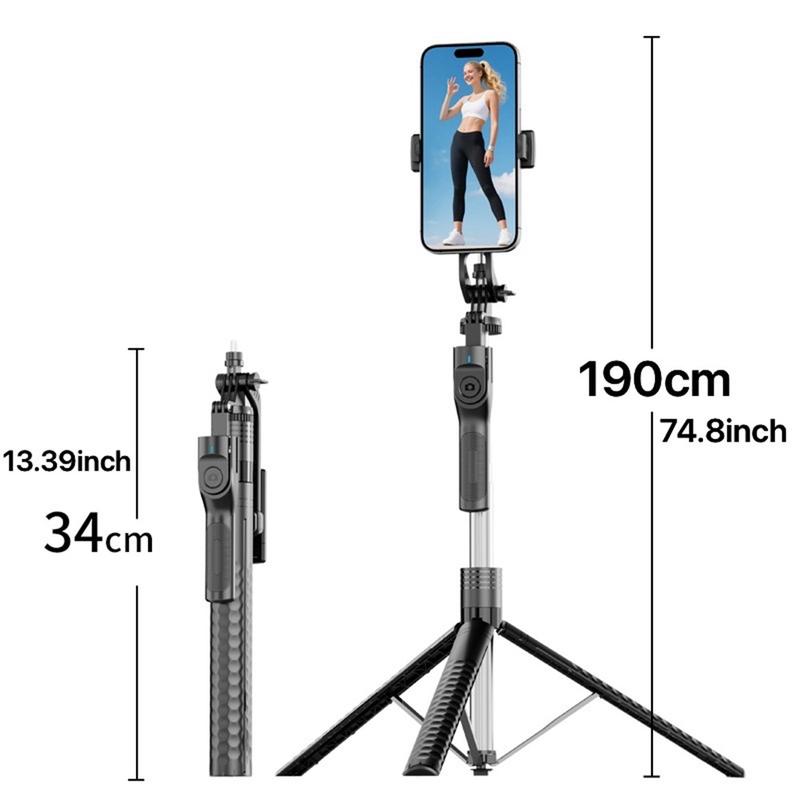 - Indrukwekkende 1,9 m verlenging - Verlengt tot 190 cm voor groothoekopnamen; opvouwbaar tot 34 cm voor draagbaarheid.