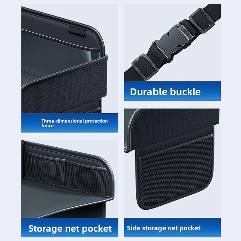 - Multifunctioneel ontwerp dat een reistray voor kinderen combineert met een opbergsysteem voor de rugleuning van de autostoel