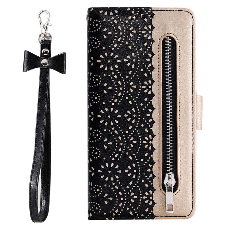 Het tweekleurige ontwerp met een kantpatroon geeft dit accessoire een unieke uitstraling en heeft ook alle functionaliteit van een portemonnee. Bovendien beschermt het uw Samsung Galaxy A13 5G tegen schade en wordt het geleverd met een koord voor extra veiligheid op drukke plaatsen.